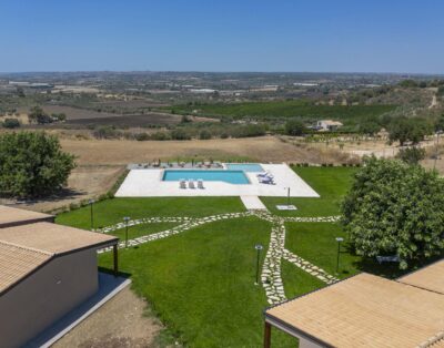 Feinste Lage im barocken Südosten Siziliens mit traumhaftem Weitblick, Padel-Court und 10 m langem beheizbarem Panorama-Infinitypool.