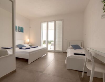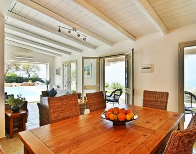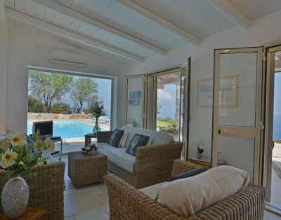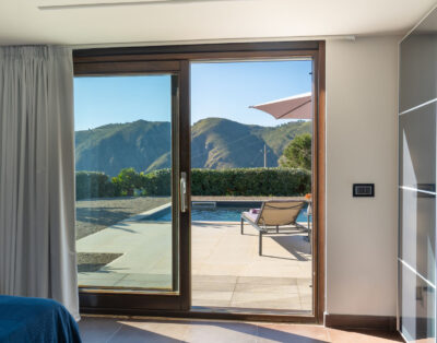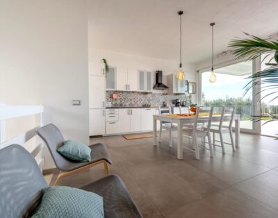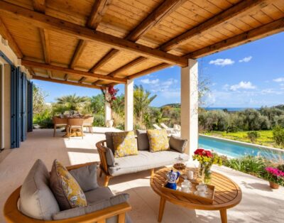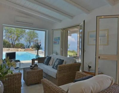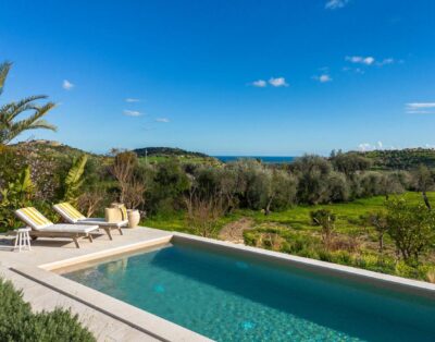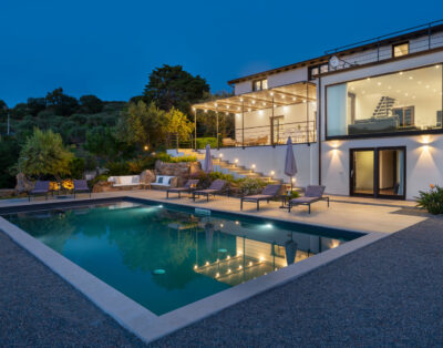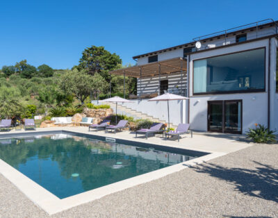 Ein modernes Ferienhaus ideal für zwei Familien mit Meerblick, 15 m langen Pool und klarem Design.