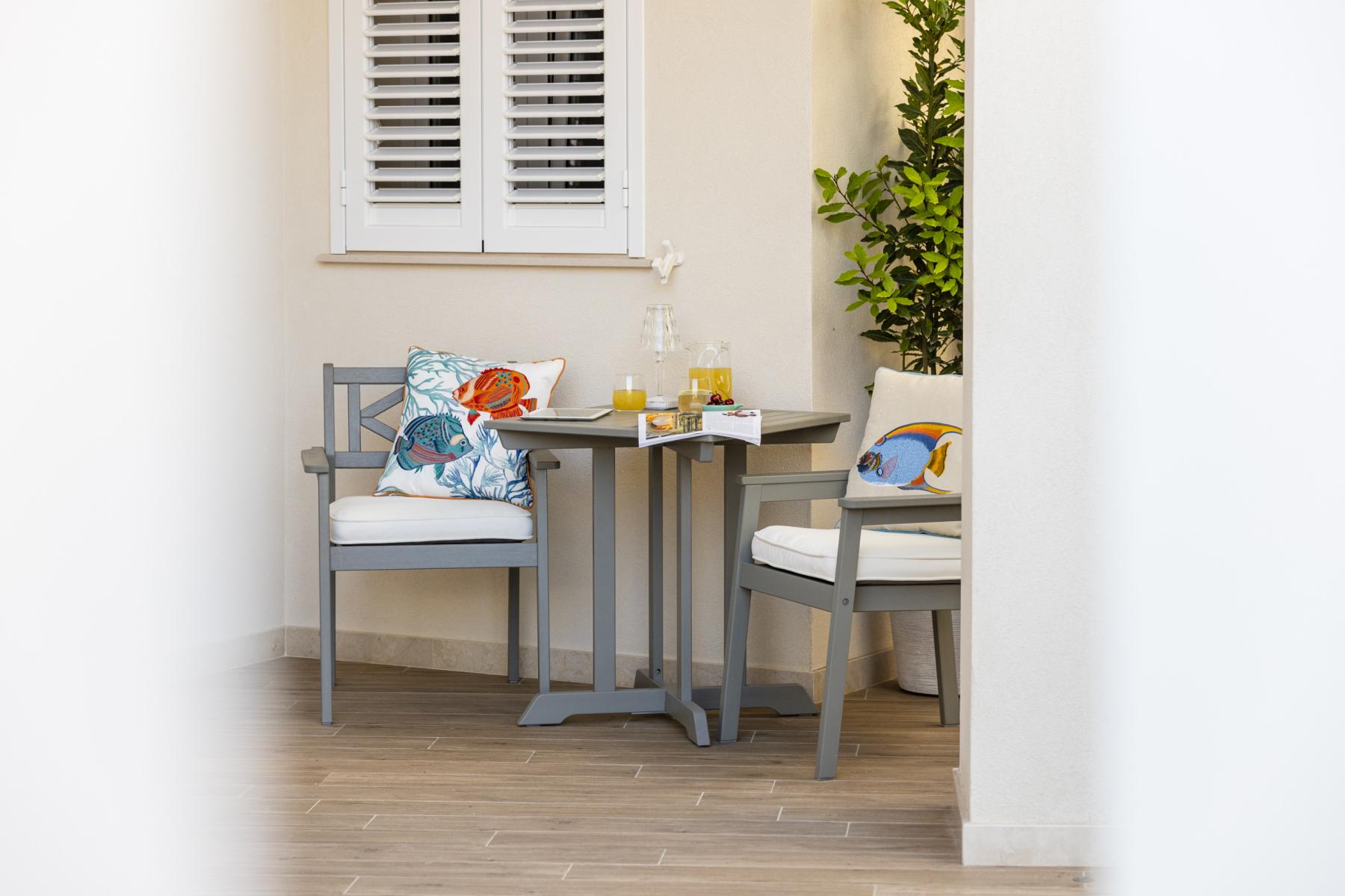Terrasse mit Essbereich und Meerblick