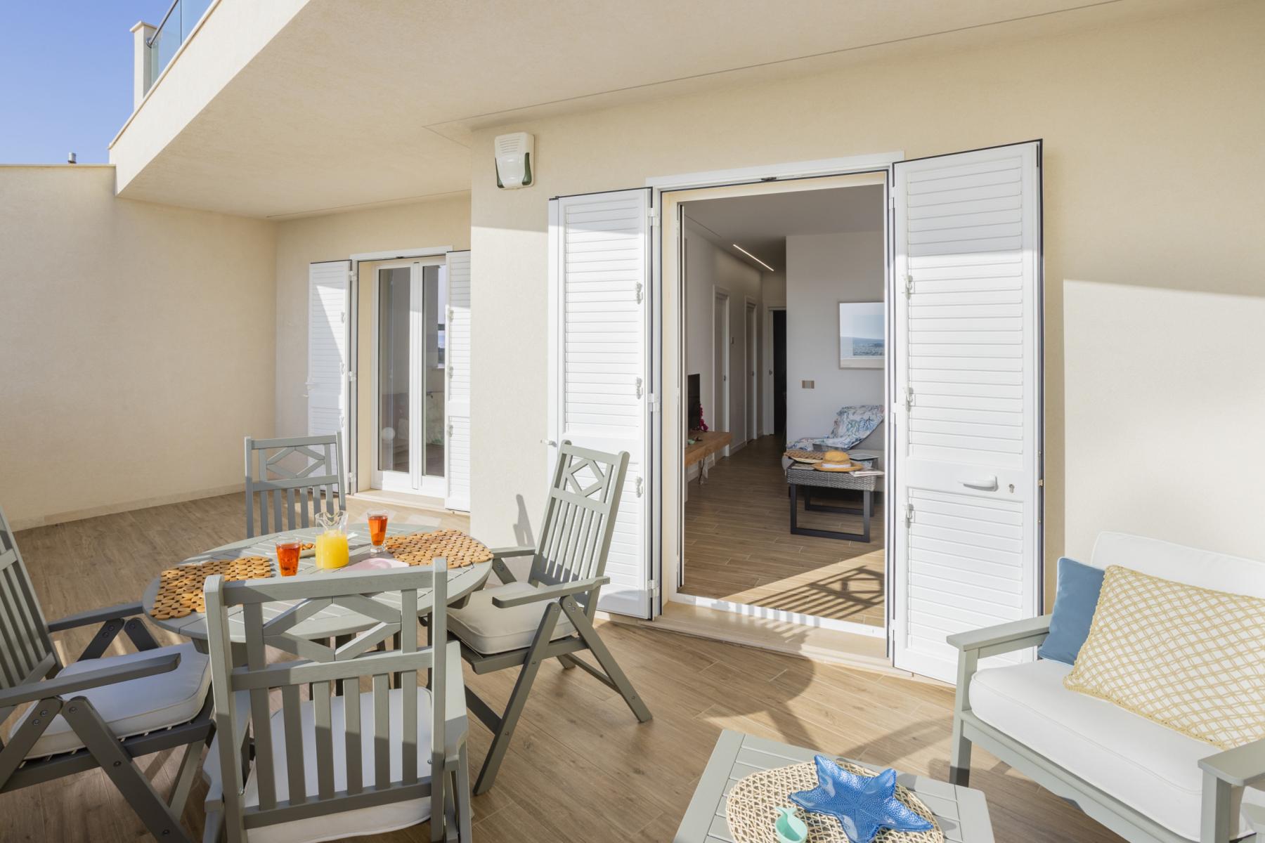 Suchen Sie eine hübsche Ferienwohnung am Meer auf Sizilien, in einer der schönsten Gegenden der Insel? Das Beachapartment ist perfekt für alle die vor einem schönen Sandstrand auf Sizilien die schönste Zeit des Jahres verbringen möchten. Die Ferienwohnung für bis zu 4 Personen wurde im Jahr 2022 komplett renoviert. Der Eingang befindet sich in der Wohnküche, die zu den zwei Doppelzimmern und einem Badezimmer mit Dusche führt. Das Wohnzimmer öffnet sich auf eine herrliche Veranda mit Blick auf das Meer und bietet einen Postkartenblick, besonders bei Sonnenuntergang. Zu Fuß erreichen Sie eine Bar, einen Supermarkt und einen Zeitschriftenladen. Am Strand direkt vor dem Objekt können vom 10. Juni bis 31. August 2 Sonnenliegen und 1 Sonnenschirm buchen. Ob ein duftender Kaffee am Morgen oder ein köstliches Abendessen mit typisch sizilianischen Köstlichkeiten auf dem Essbereich im Freien der Terrasse, werden Sie lieben.