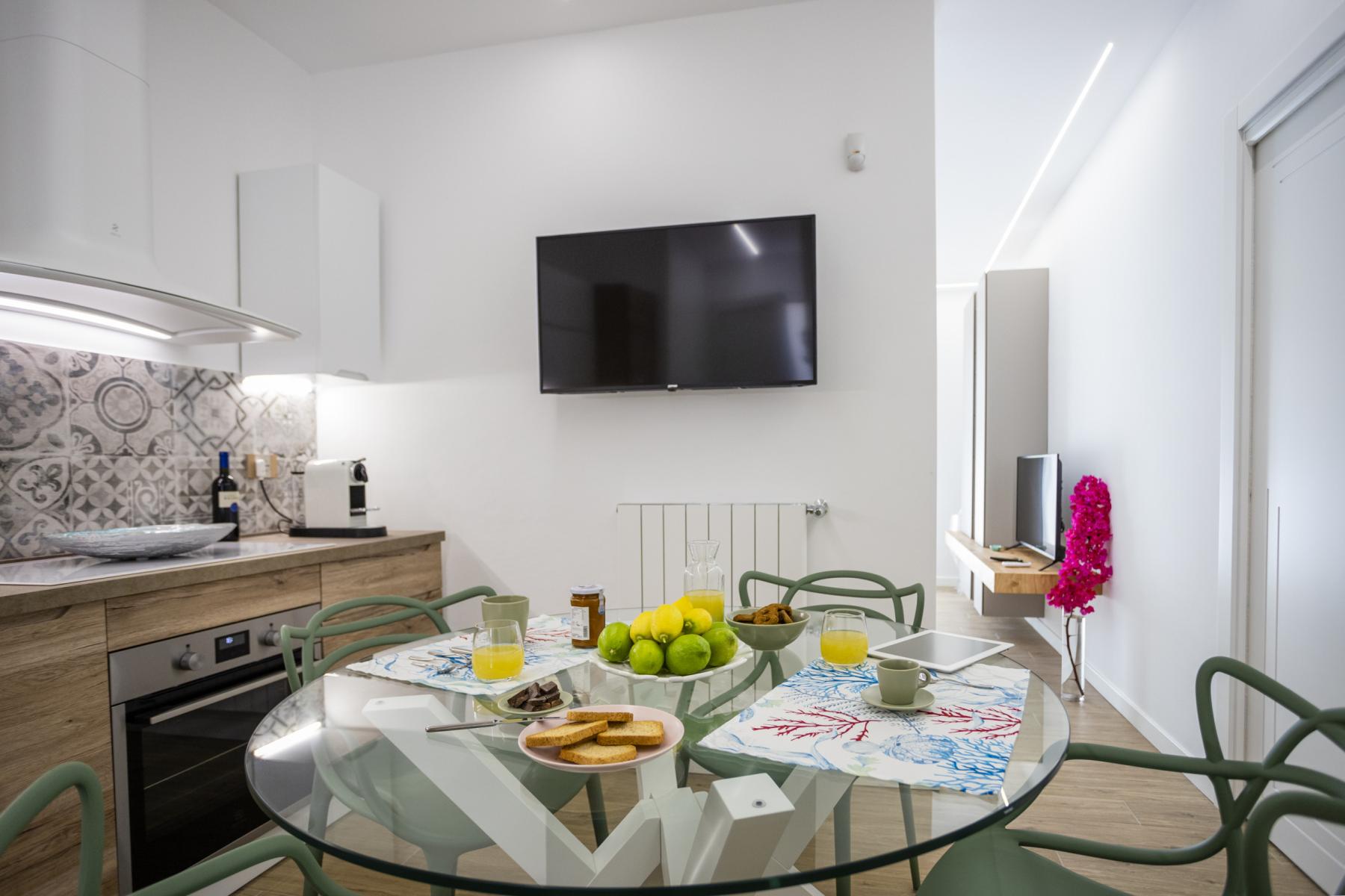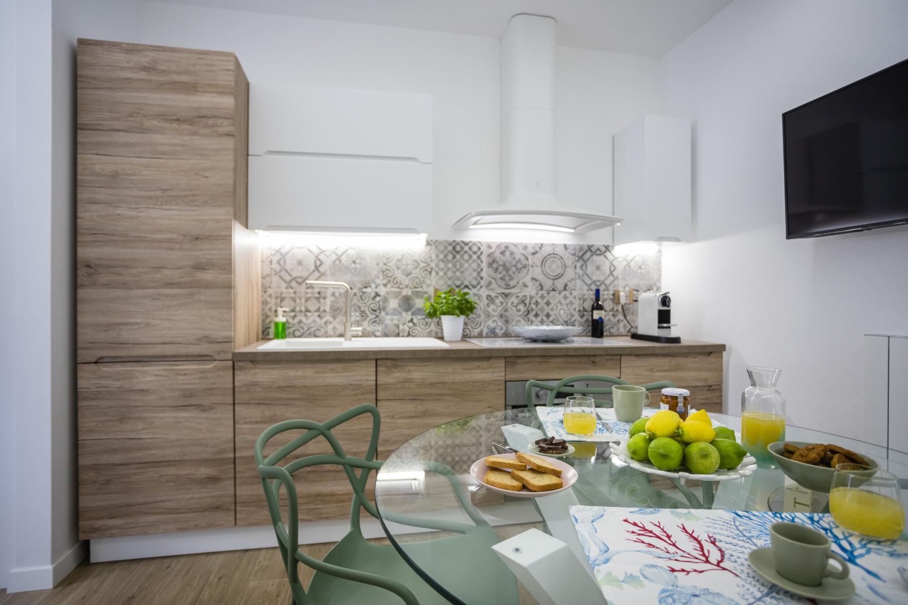 Wohnküche mit Essbereich und gut ausgestatteter Küchenzeile