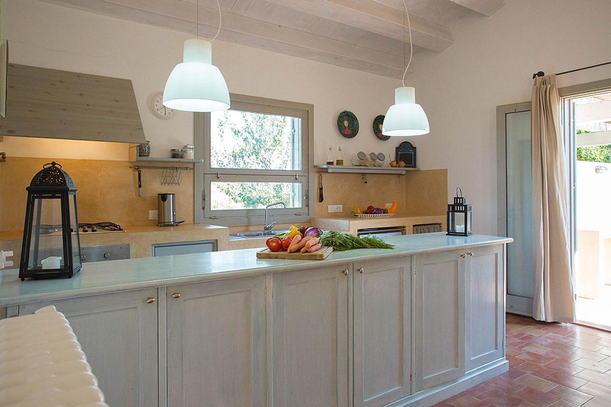 Auf 160 qm Wohnfläche besticht das Anwesen durch eine klare und stilsichere Inneneinrichtung mit hochwertigen Materialien. Vigna bietet drei Doppelbettzimmer, zwei davon im Erdgeschoss, beide mit En suite Badezimmern und das dritte in einem Aussichtsturm (ohne eigenes Bad), das über eine Wendeltreppe erreicht wird. Von den Schlafzimmern wird Sie der schöne Blick auf den Pool und die umliegende Landschaft mit mediterraner Macchia und Weinreben verzaubern. Im Erdgeschoss befindet sich das gemütliche und modern eingerichtete Wohnzimmer mit Blick auf die Terrasse und den Garten. Neben dem Wohnzimmer befindet sich eine gepflegte und hochwertig ausgestattete Küche mit Bar und Essbereich. Die Küche öffnet sich zum Poolbereich an der Vorderseite des Hauses und zu einem bequemen Essbereich im Freien auf der Rückseite des Hauses.