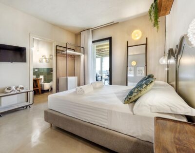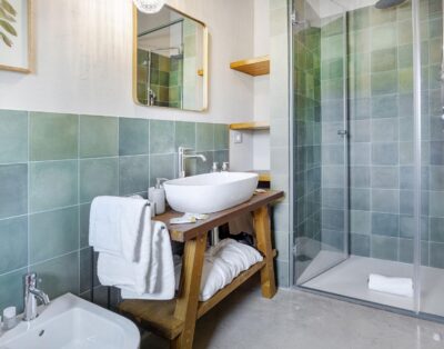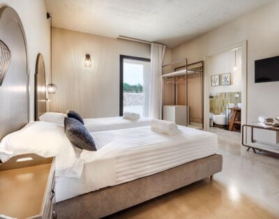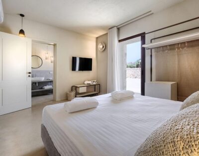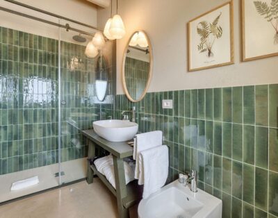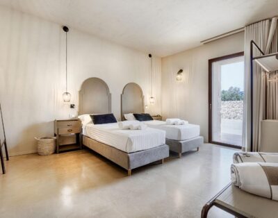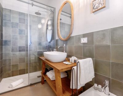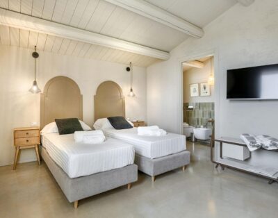 4 Schlafzimmer mit je eigenem ensuite Badezimmer (2 x Doppelbett von 160 cm Bereit, 2 Doppelzimmer mit Einzelbetten von je 90 cm Breite, die auf Wunsch zusammengestellt werden können) Jedes Zimmer verfügt über einen Zugang nach draußen.