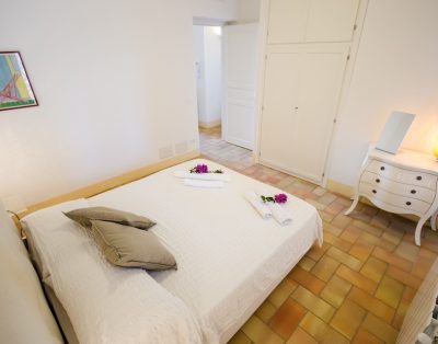 1 Schlafzimmer mit Doppelbett mit ensuite Badezimmer / WC mit Dusche und Zugang zur Aussenterrasse